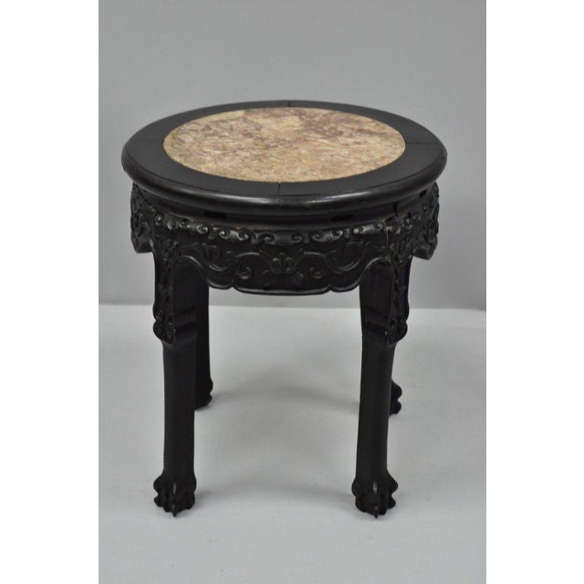 Antique Asian Oriental Marble Top Carved Hardwood Plant Stand Side Table