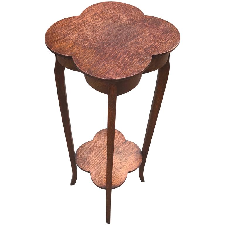 Arts And Crafts Solid Oak Four Leaf Flower Shape Plant Or Sculpture Stand Table