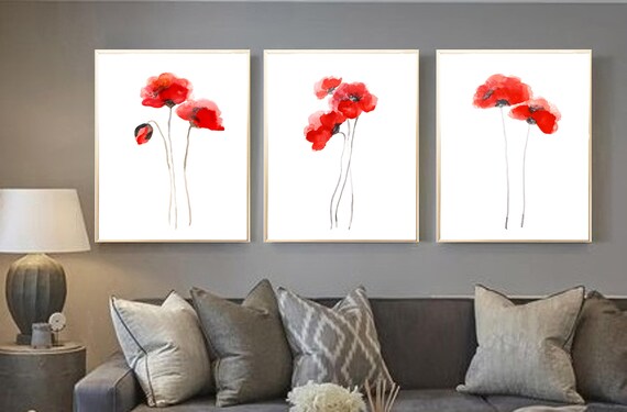 Poppy Home Decor Poppy Red Poppy Wall Art Poppy Watercolor Painting Poppy Art Print Poppy Set 3 Poppies Abstract Flower Poppy Minimalist