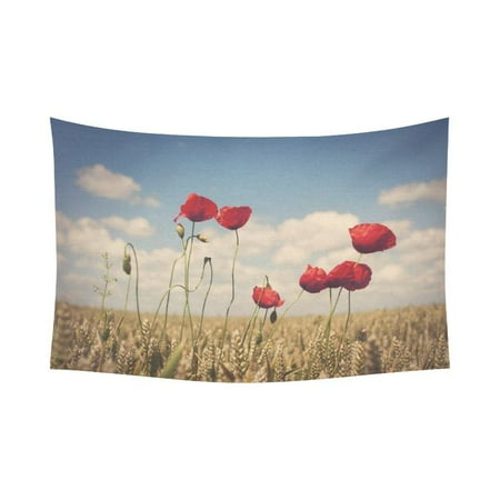 Phfzk Flower Poppy Landscape Wall Art Home Decor Red Poppies In Field Of Wheat Tapestry Wall Hanging 60 X 90 Inches